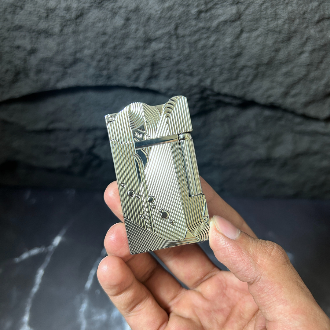 This heavy metal lighter exudes rugged sophistication, its sleek design and substantial weight commanding attention. Crafted from durable materials, its metallic body boasts a brushed finish, accentuating its clean lines and sharp edges. The ignition wheel spins with a satisfying click, producing a robust flame that defies the elements. Whether used for cigarettes, cigars, or campfires, this heavy metal lighter is a reliable companion for those who demand power and style